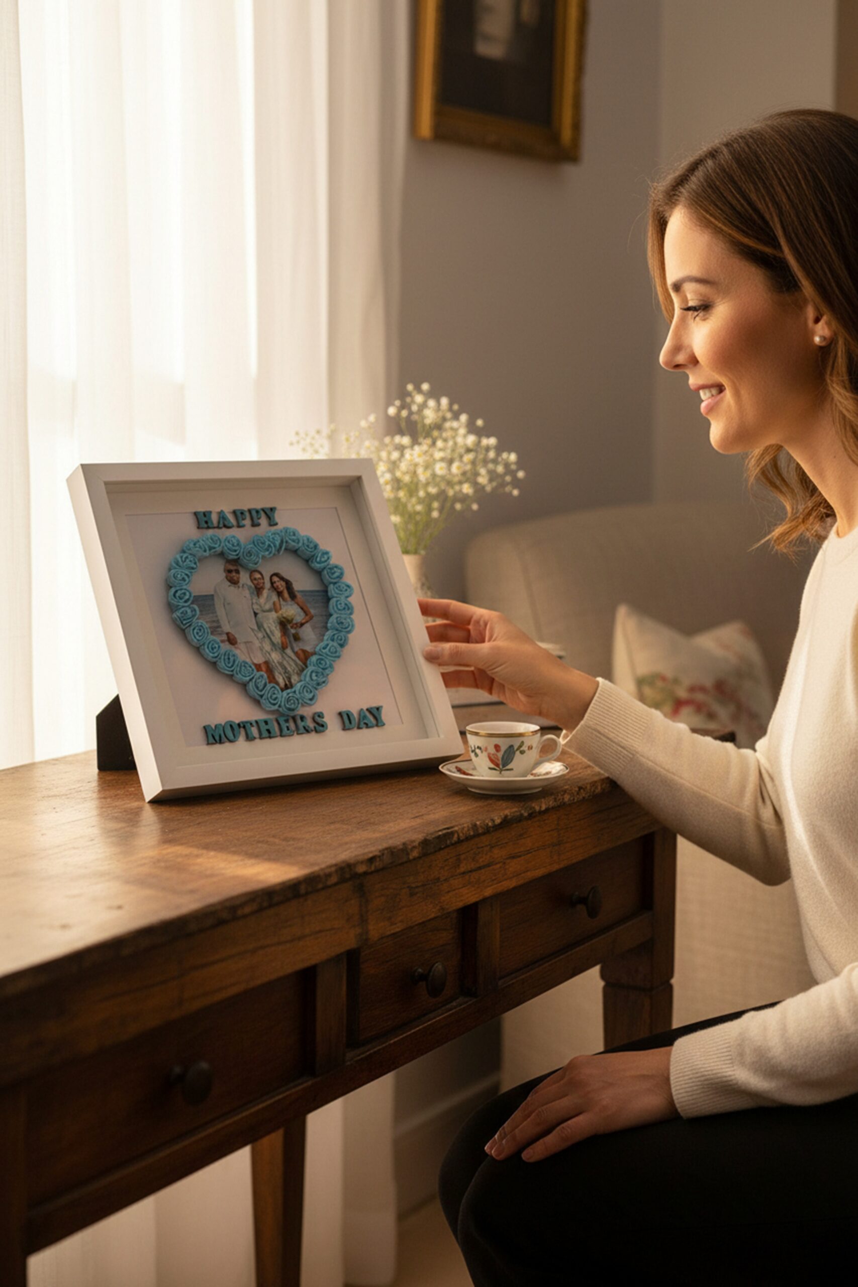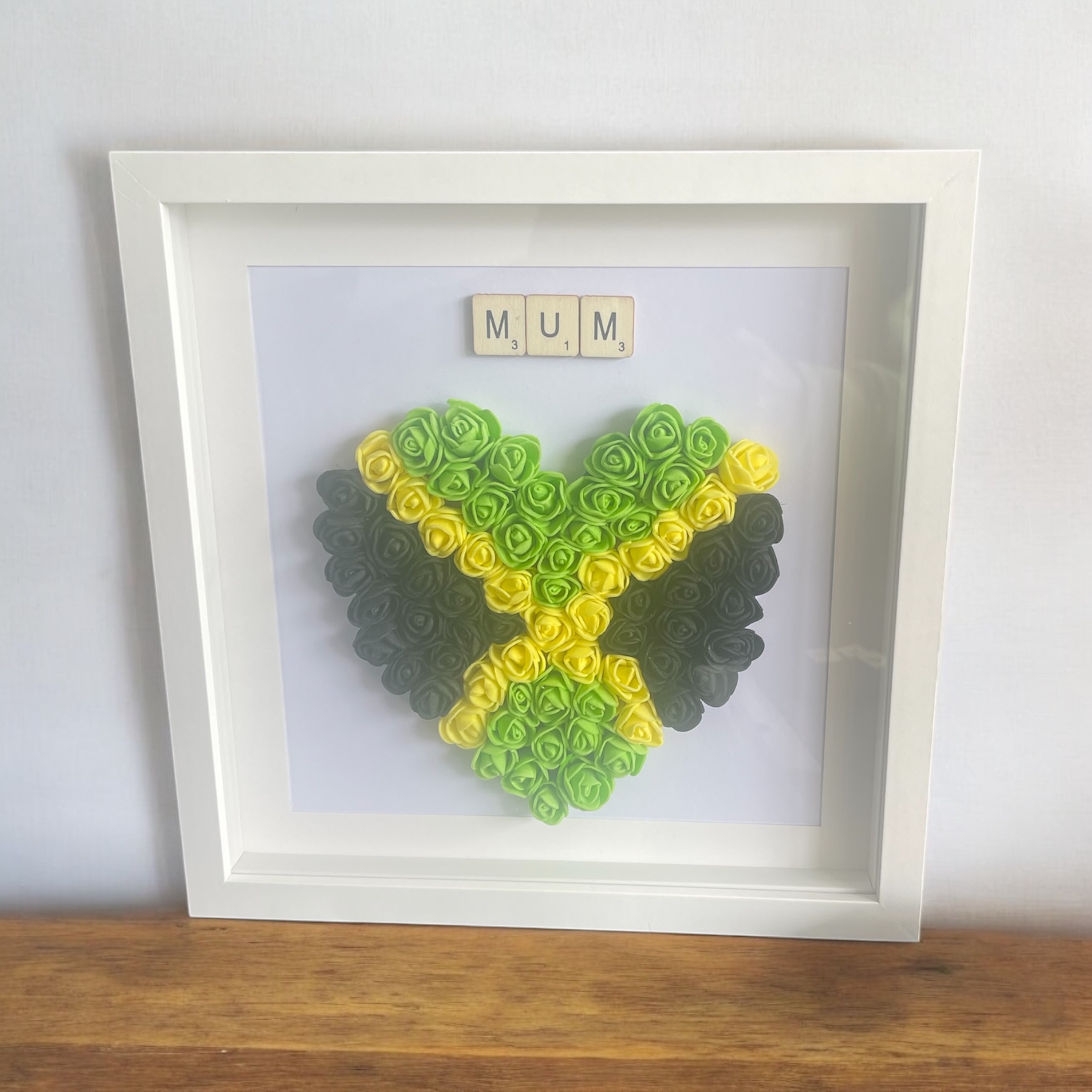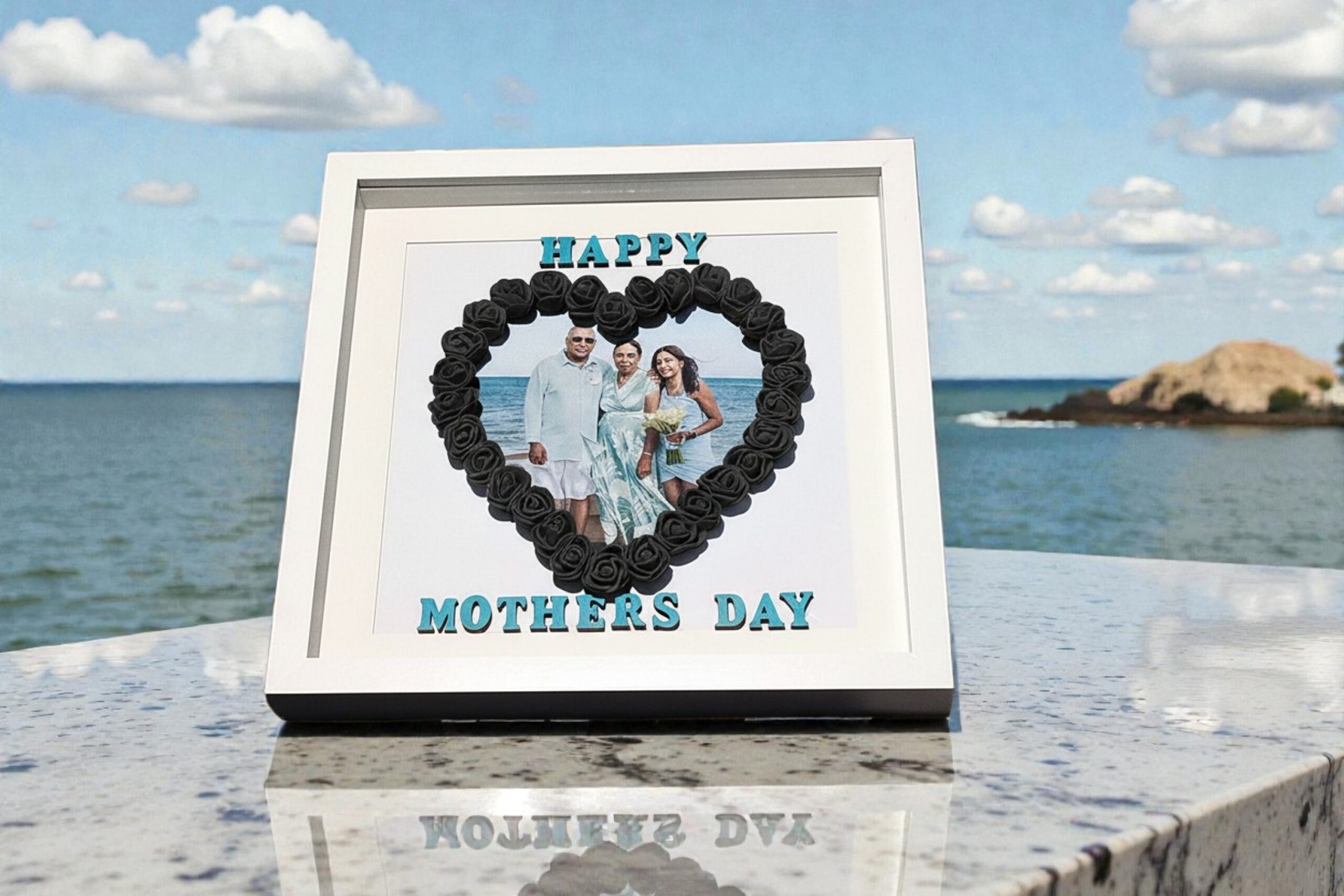 Celebrate love and cherished memories with this Floral Heart Keepsake Frame. Handcrafted with 3D foam roses arranged in a heart shape, it beautifully showcases your chosen photograph, creating a personal and timeless keepsake. Customise the lettering and rose colours to perfectly reflect your style or the recipient’s favourite shades. Set within a premium white shadow box, this frame adds elegance and warmth to any room. Perfect for Mother’s Day, Father’s Day, birthdays, anniversaries, or as a heartfelt gift, the Floral Heart Keepsake Frame transforms treasured moments into a lasting display of love, gratitude, and nostalgia.