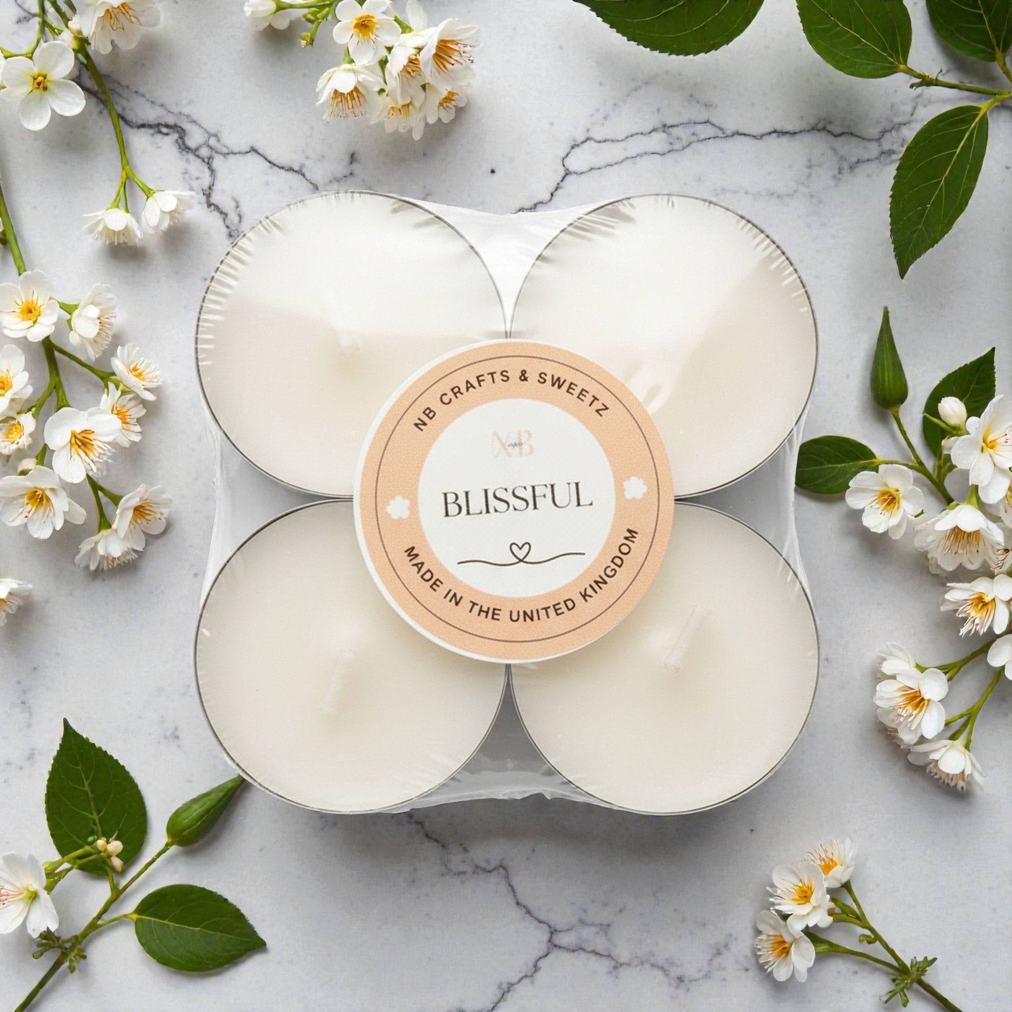 Create calm, effortless ambience with our Jasmine Scented Tealights, handmade in the UK using a natural blend of coconut and rapeseed wax. This 4-pack delivers a clean, even burn and a soft floral jasmine fragrance that gently fills your space without overpowering. Perfect for relaxing evenings, self-care rituals, meditation, or table styling, these jasmine scented tealights add warmth and elegance to any room. Each tealight burns smoothly with minimal soot, offering up to 20 hours of fragrance per pack. Beautifully presented and easy to use, they’re ideal for everyday comfort or thoughtful gifting.
